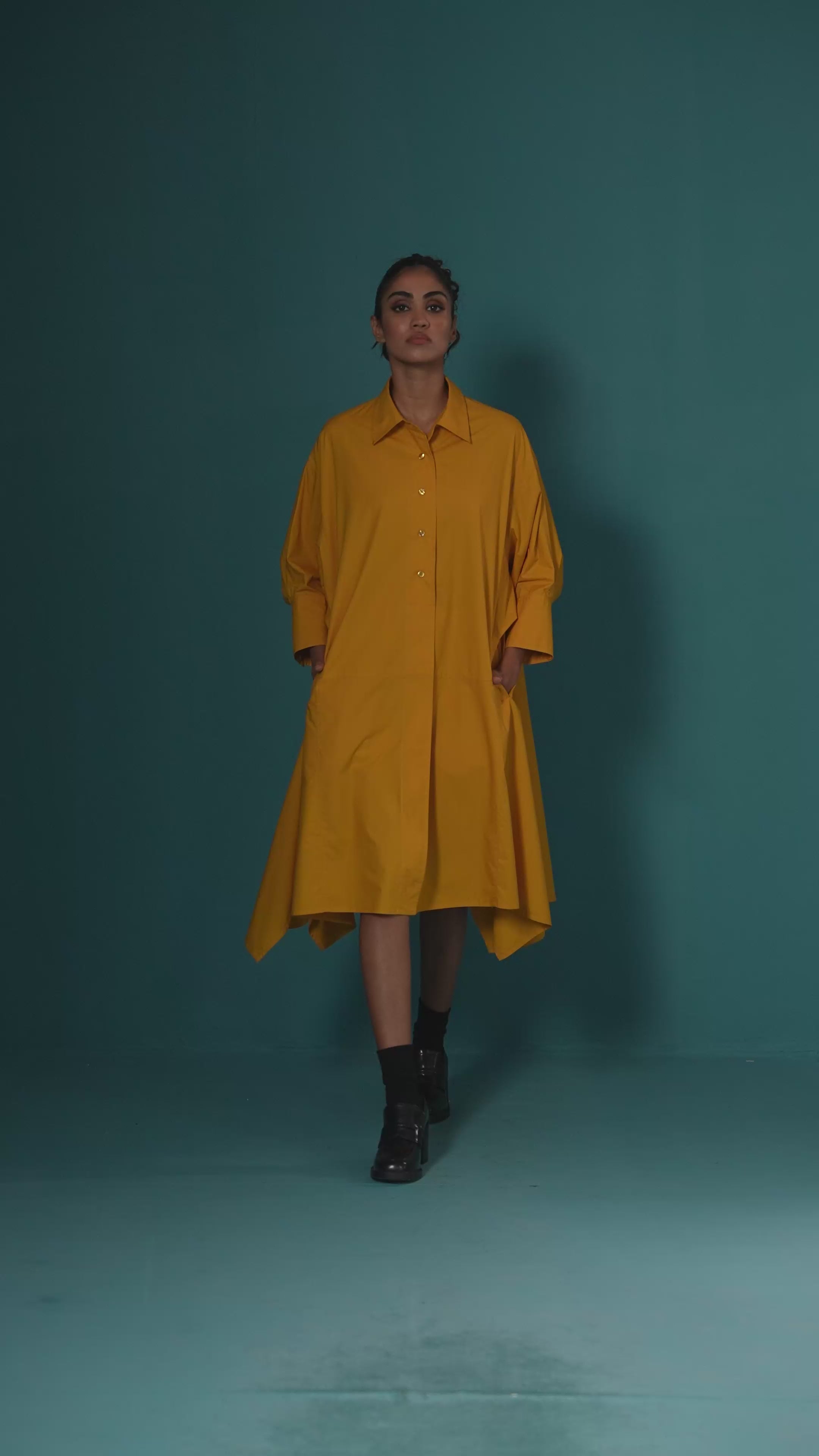 Shirt Dress With Pleated Sleeve And Side Button Detail