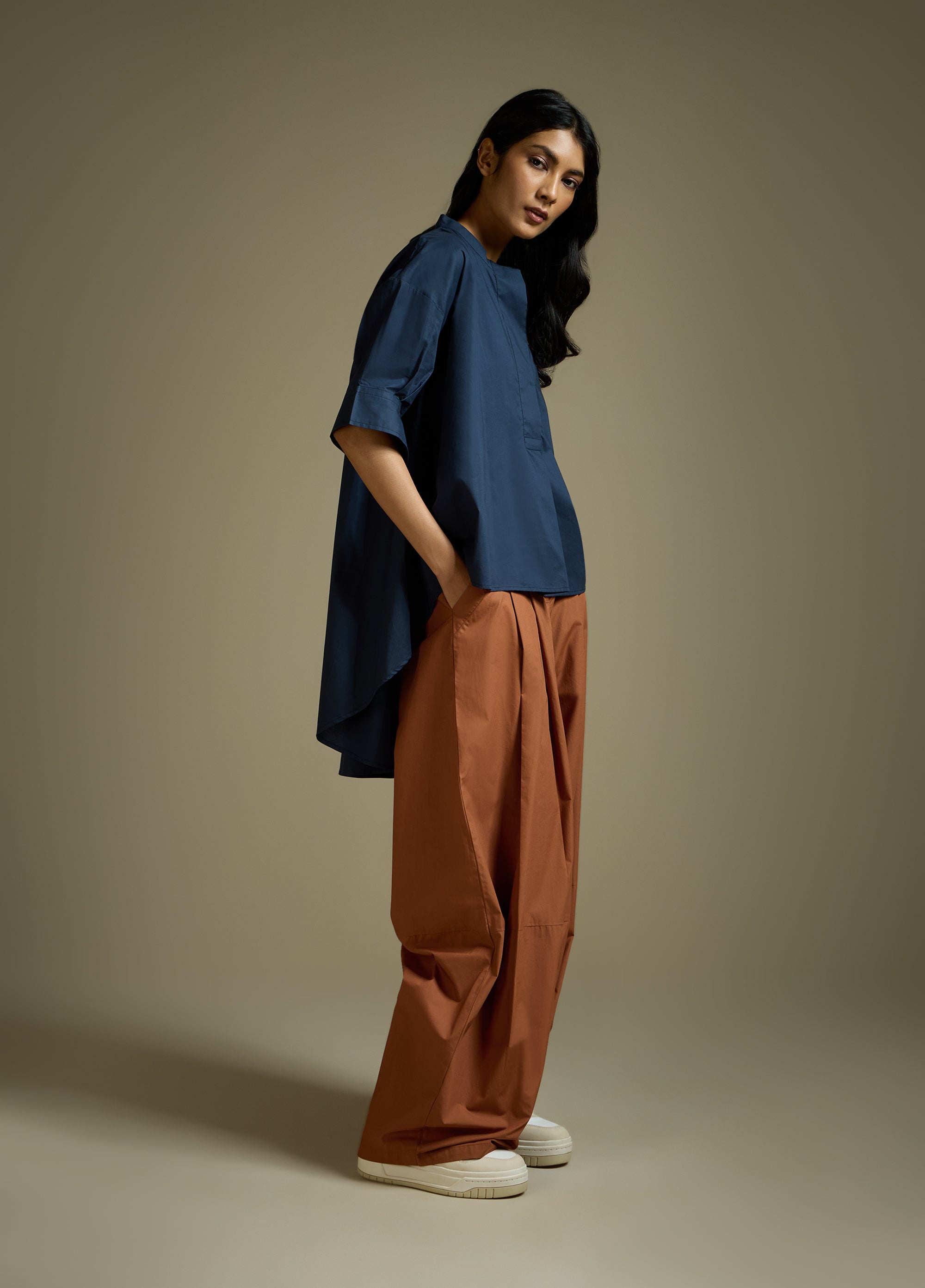 High-Lo Top With Flare And Pleated Sleeve
