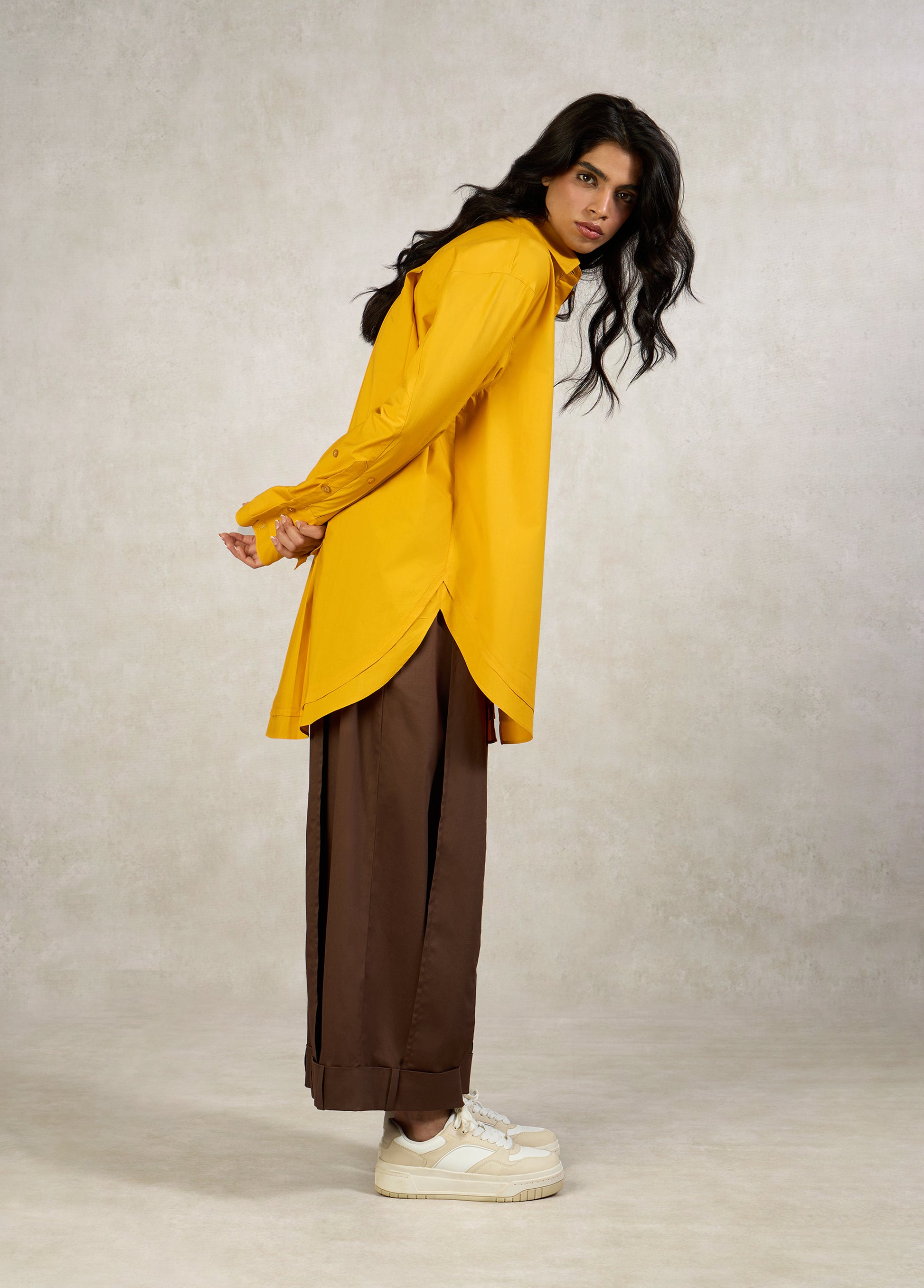 SHIRT WITH SIDE TIE CONTRAST CUFF & HEM