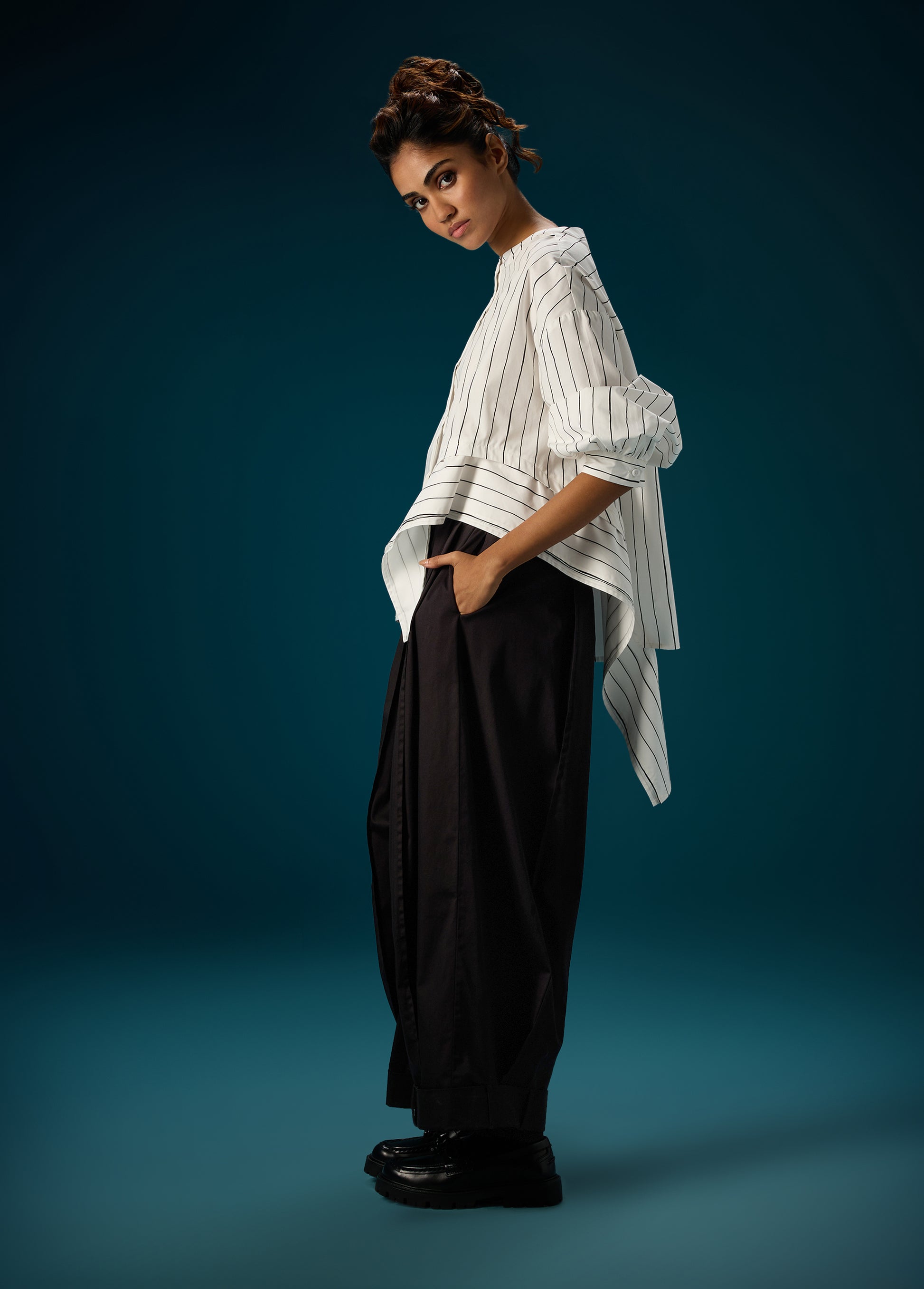 Product Details: - SHIRT WITH SIDE ASYM PANEL