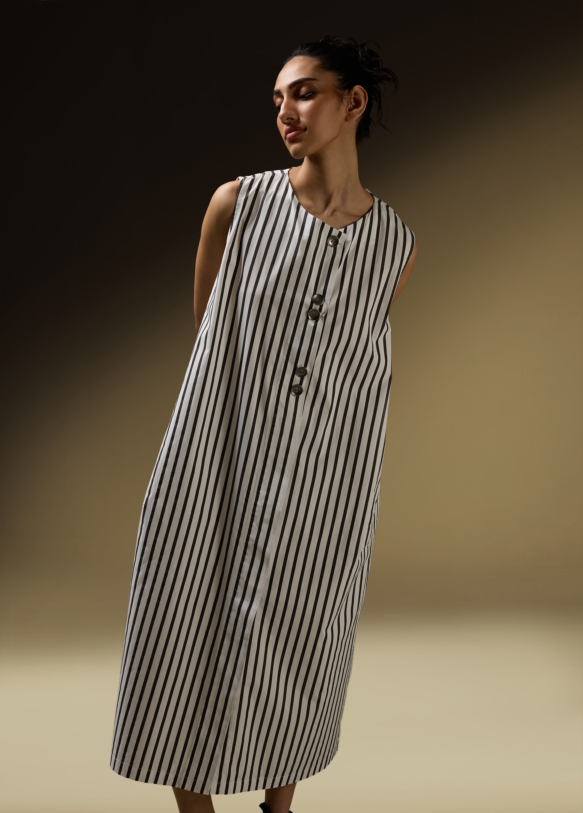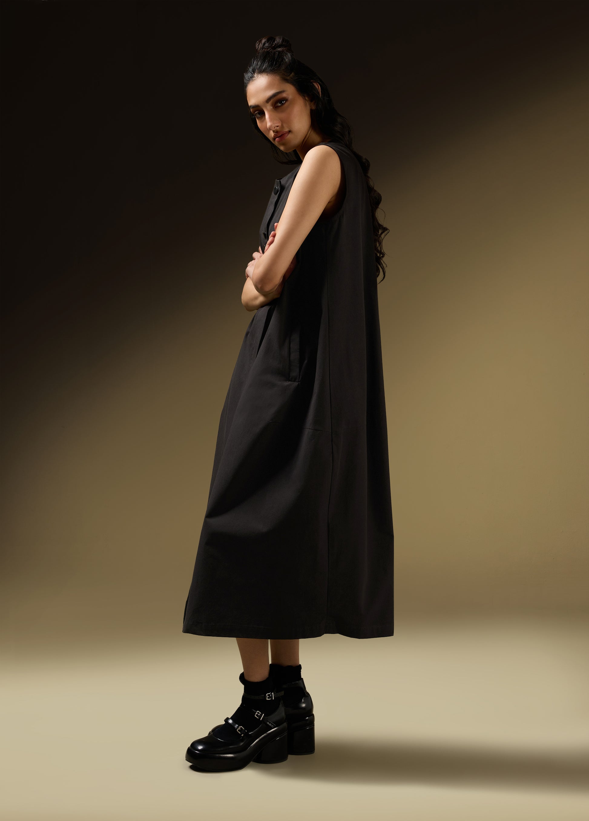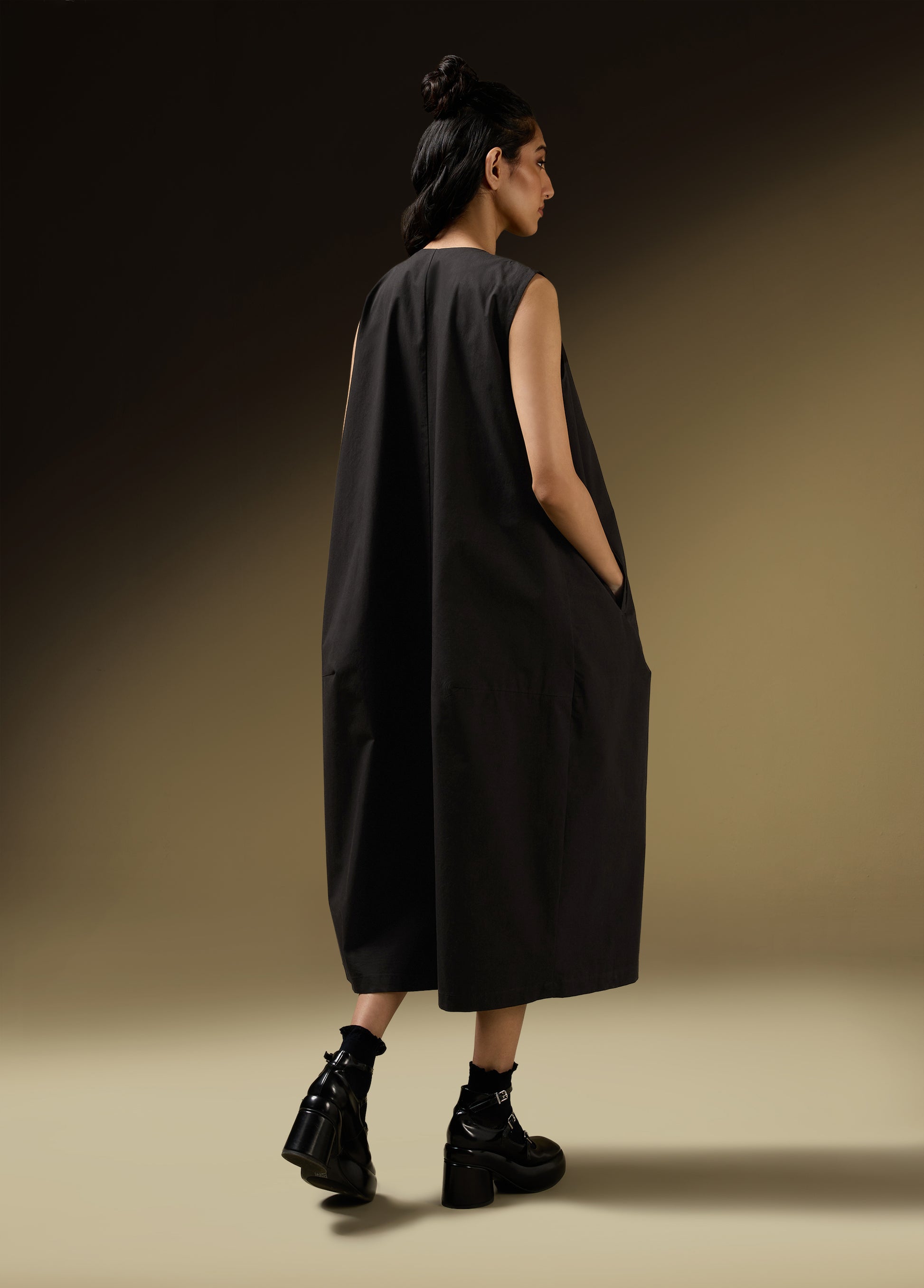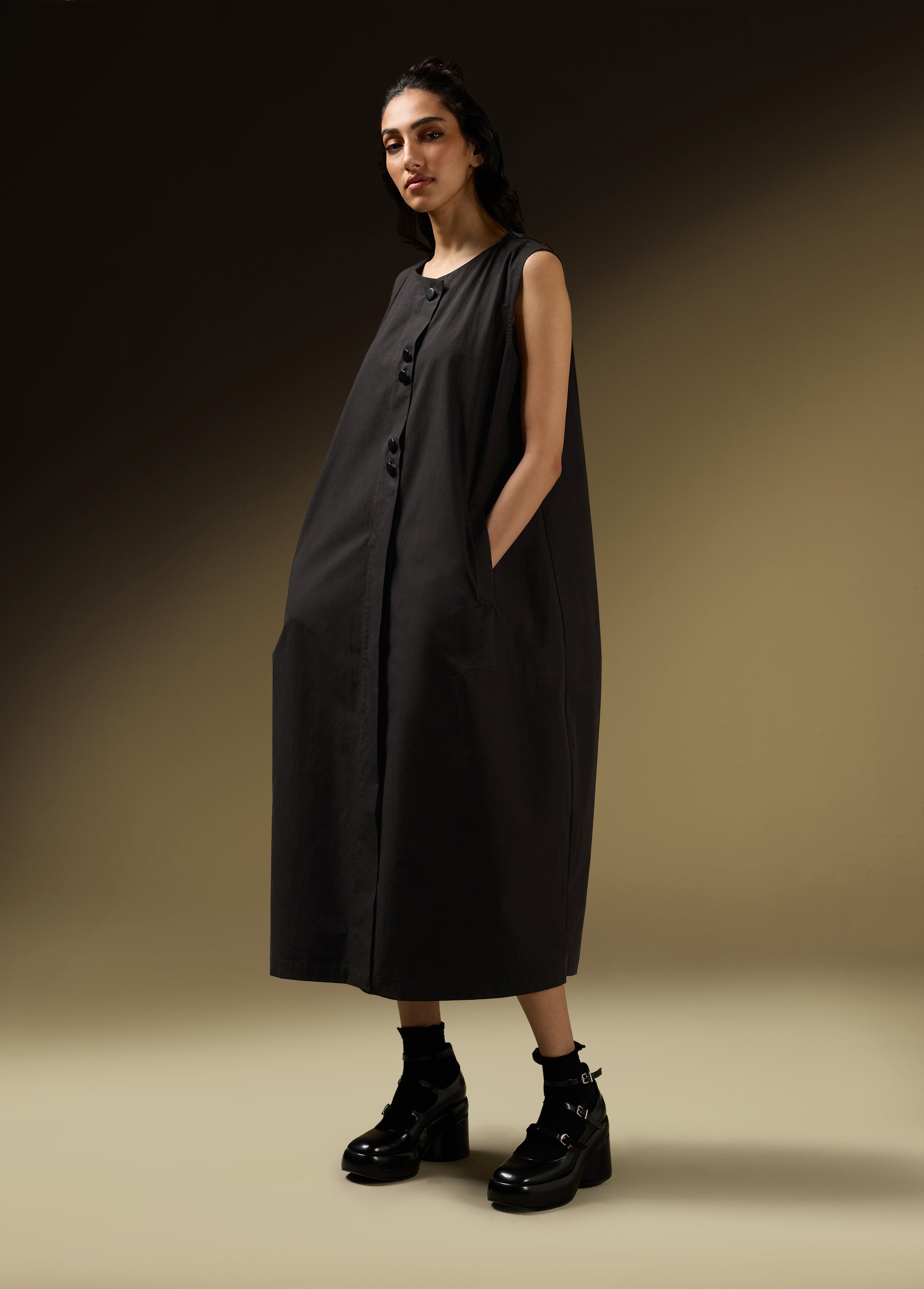 Product Details: - SLEEVELESS COCCOON JACKET DRESS
