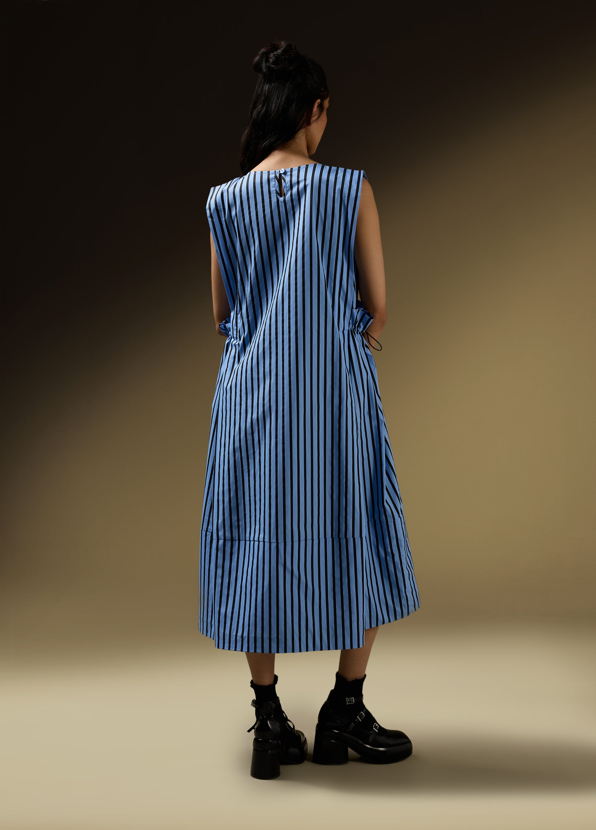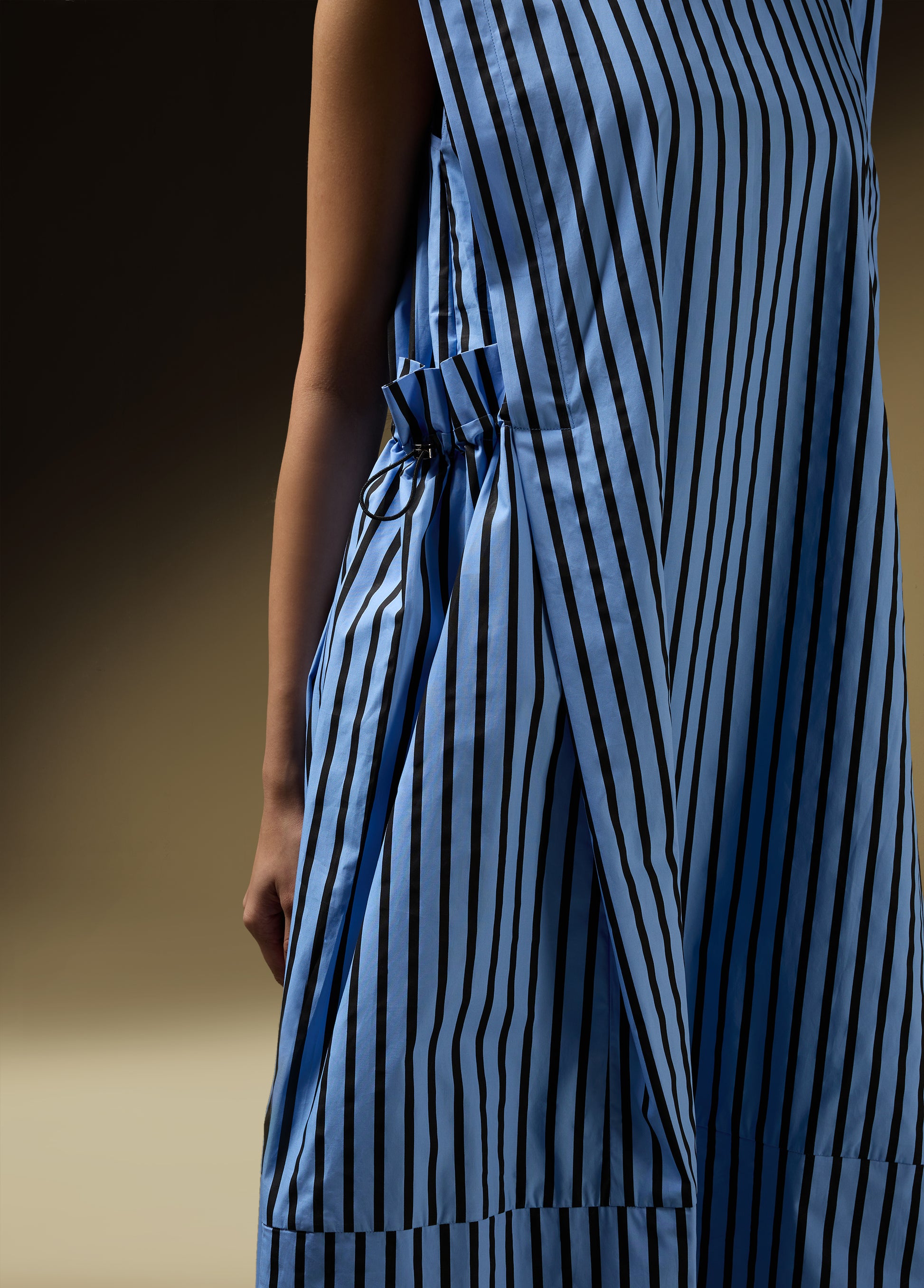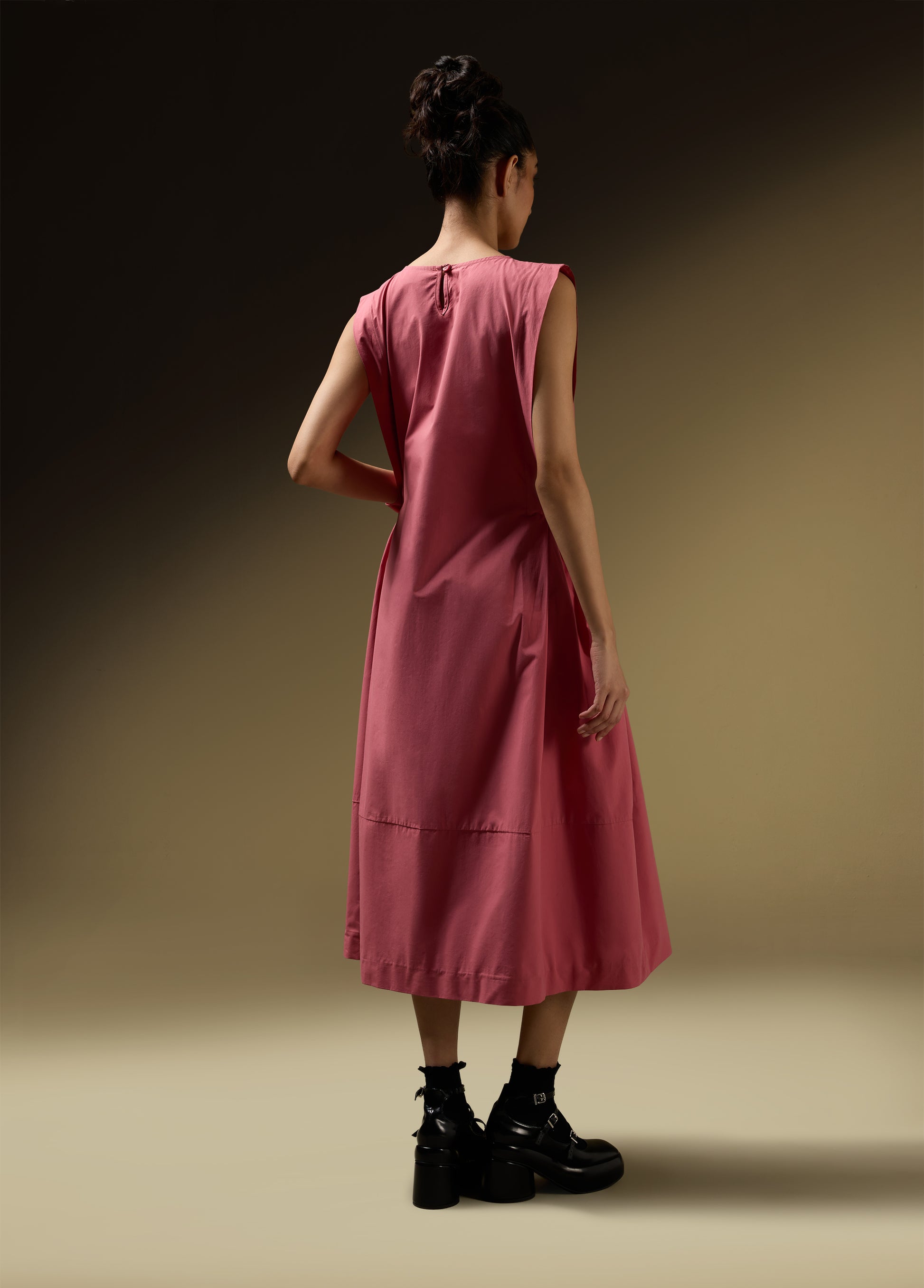 SLEEVELESS DRESS WITH SHOULDER PANEL AND ROUCHE POCKET DETAIL