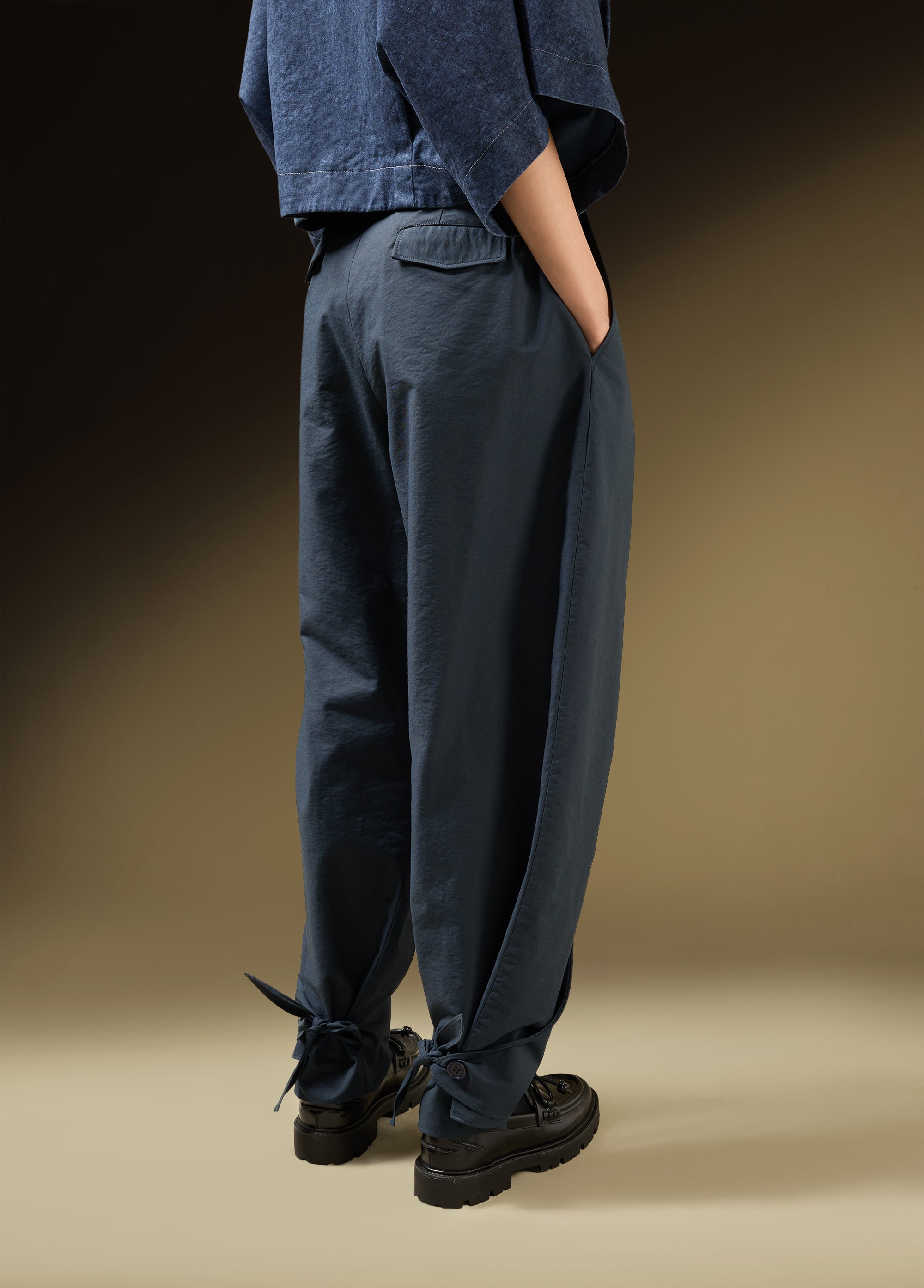 Pants With Back Overlap And Tie Detail